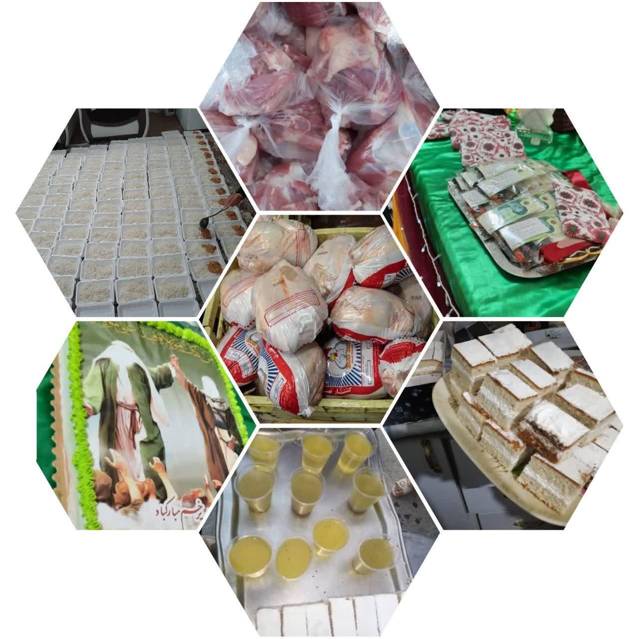 توزیع بسته معیشتی، ذبح یک گوسفندکمک به ایتام 3/800/000میلیون و هشتصدهزار تومان، اهداء دو سری جهیزیه،اهداء لوازم التحریر،وام قرض الحسنه به طلاب 40 میلیون تومان